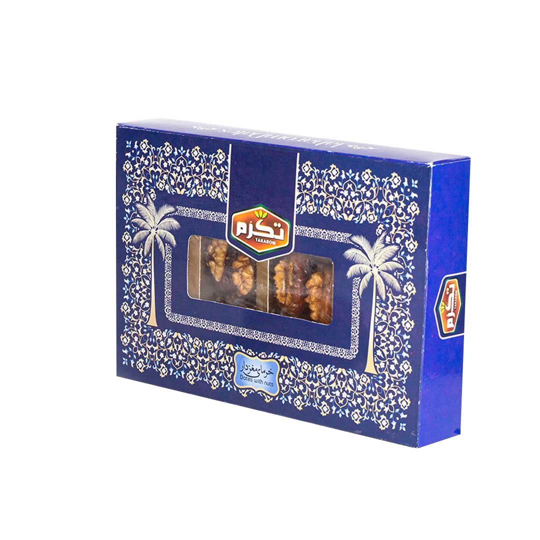 Takarom’s Piarom Dates with Walnut, a luxurious gift option that stands out! With their elongated shape, thin skin, and rich caramel flavor, these dates are a beloved choice for many palates, even beyond Iran. By adding walnuts, we’ve enhanced both their taste and nutritional benefits. Now you can order Takarom’s Piarom Dates with Walnut and indulge in the delicious flavor and health advantages of this caramel-filled delight!