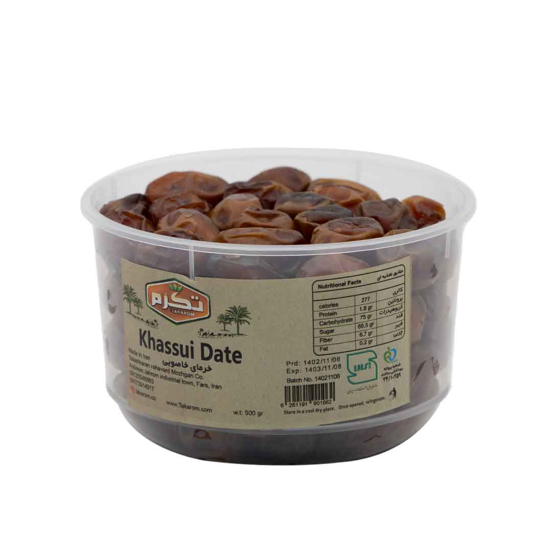 - مناسب برای هضم: فیبر موجود در خرمای خاصویی تکرم به بهبود عملکرد دستگاه گوارش کمک کرده و از یبوست جلوگیری میکند.