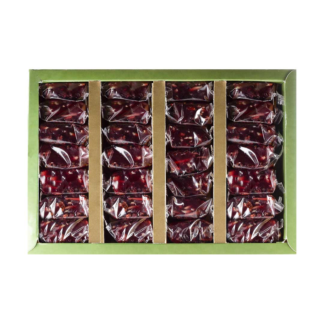 A sweet and soft dessert with nuts, with a sour and sweet coating of barberry and a mild smell of rose water. In Iranian traditional medicine, barberry is recommended for the beauty of the skin and removing impurities from the blood, and nuts are recommended for athletes due to their high protein and fiber content. Takarom company has now added more properties to this traditional Iranian dessert by combining blackberries and nuts!